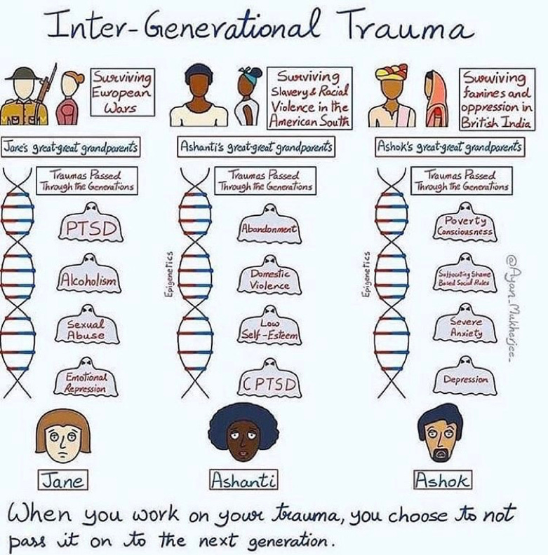 The whole field of epigenetics is about the inherited trauma from your elders and forebears. I think the graphics here speak for themselves.